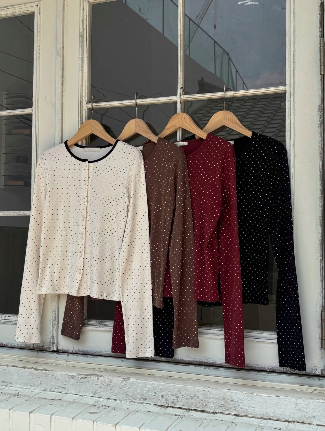 dot crew neck cardigan