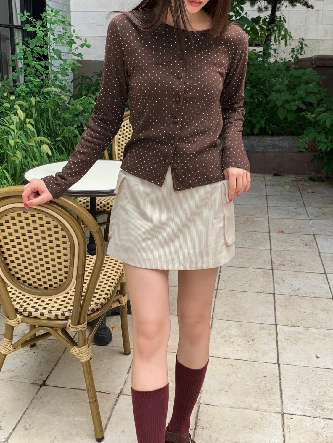 ・小さなドット柄が大人かわいいスタイルを叶えるカーディガン