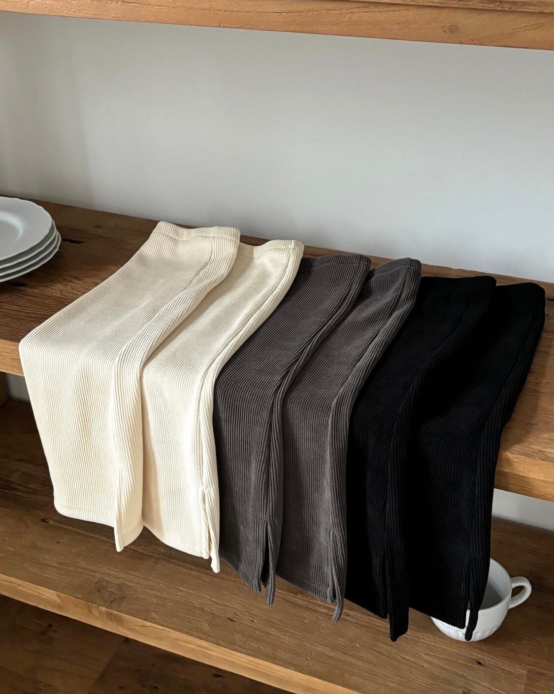 ・細やかなリブデザインに、裾にはスリットで抜け感をプラス