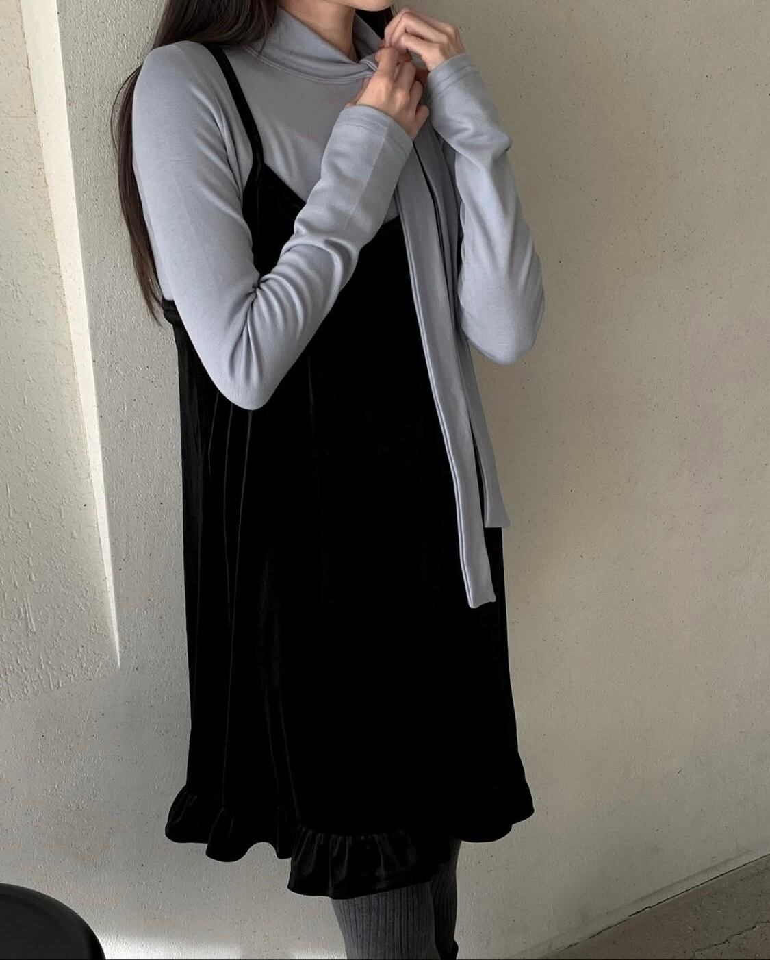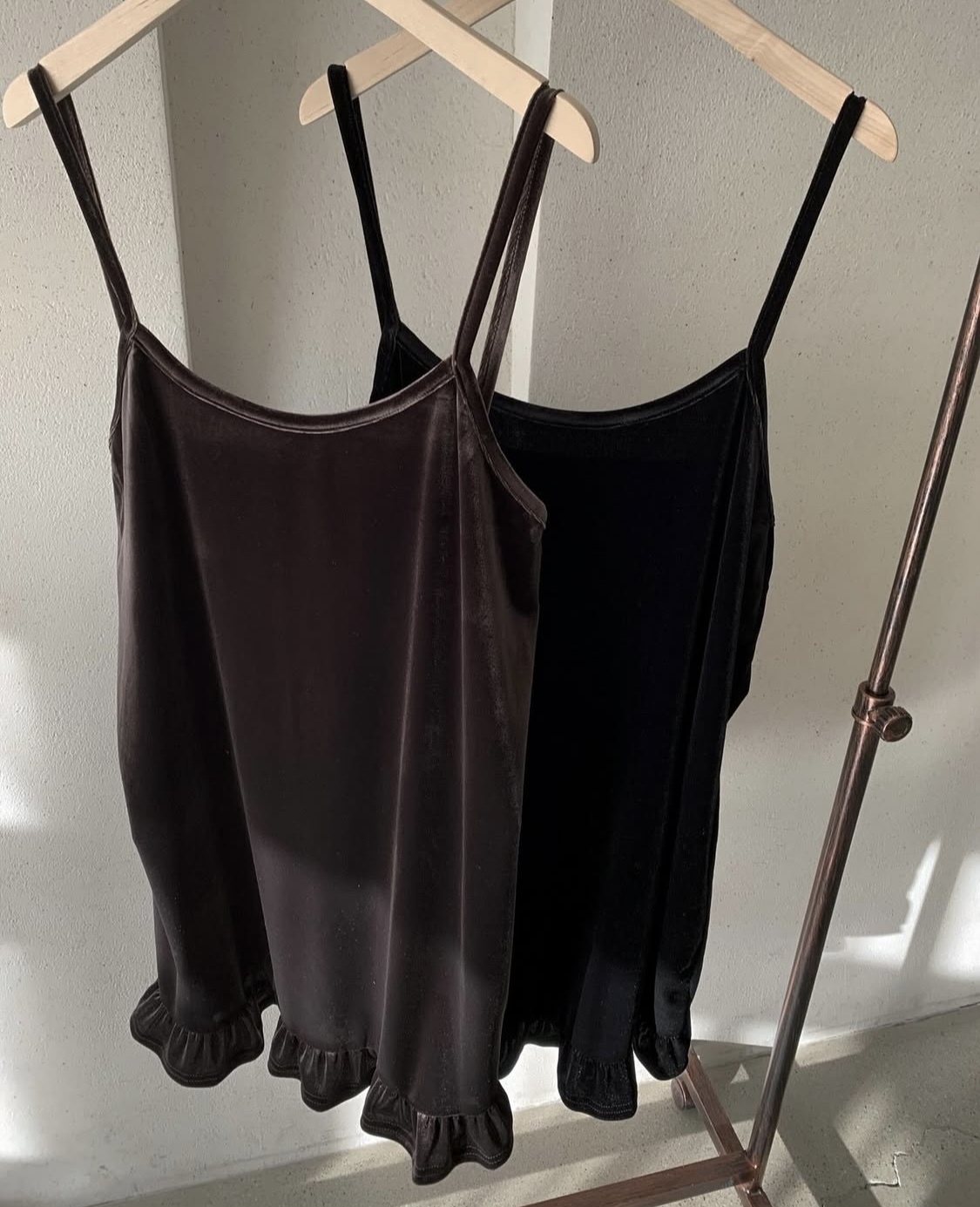 ・肌触りの良いベルベット風素材のミニキャミワンピース