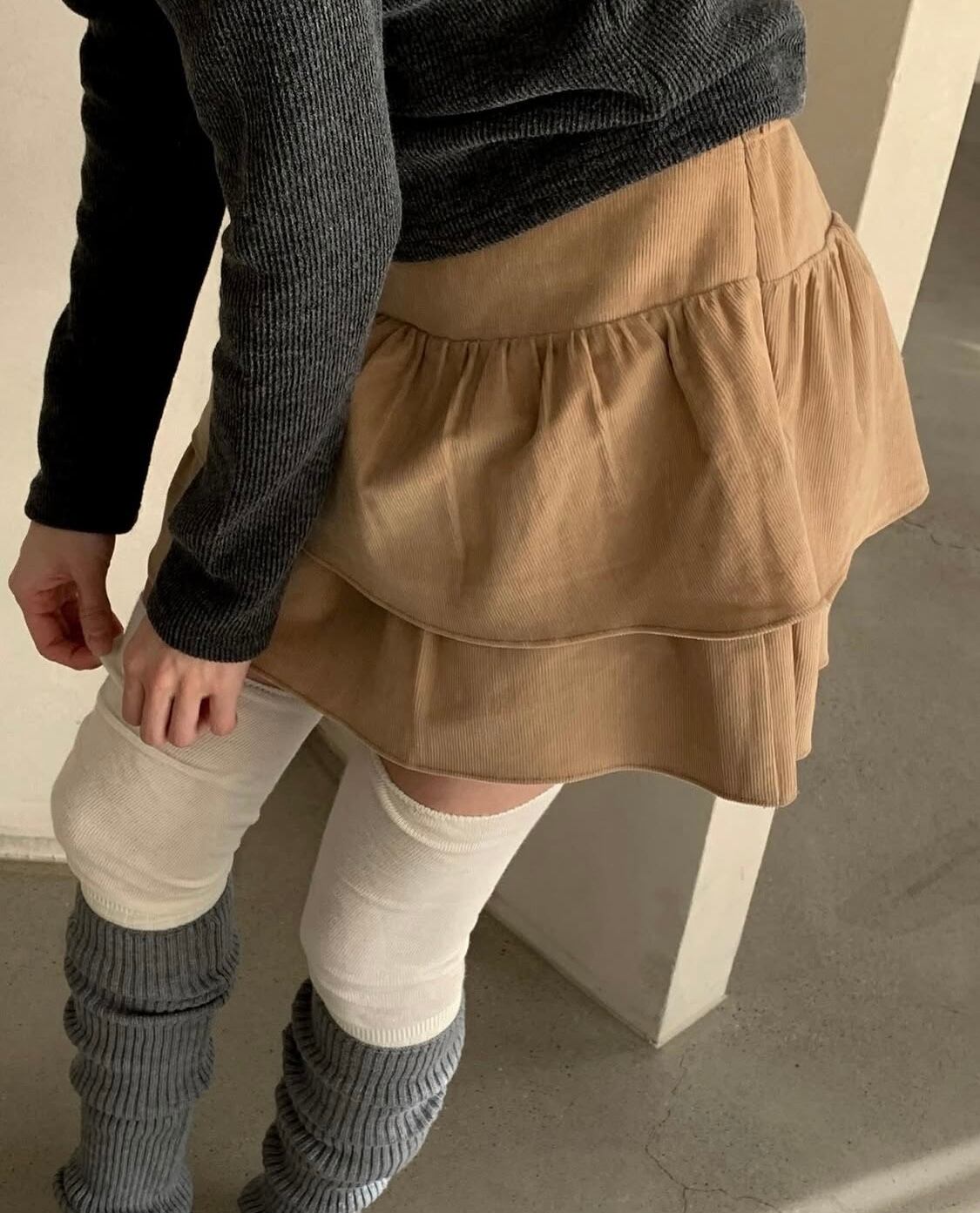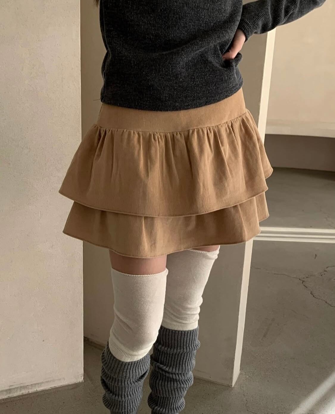 corduroy frill tiered mini skirt