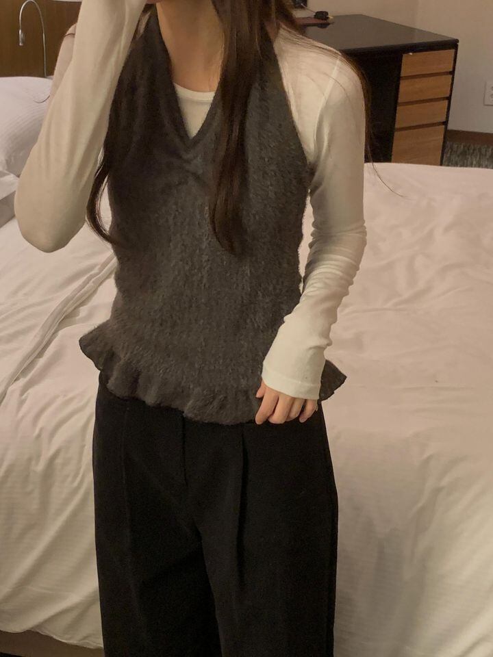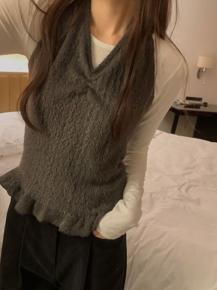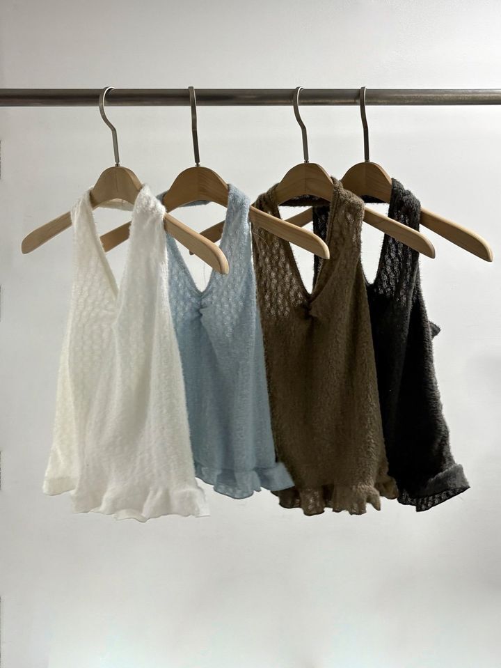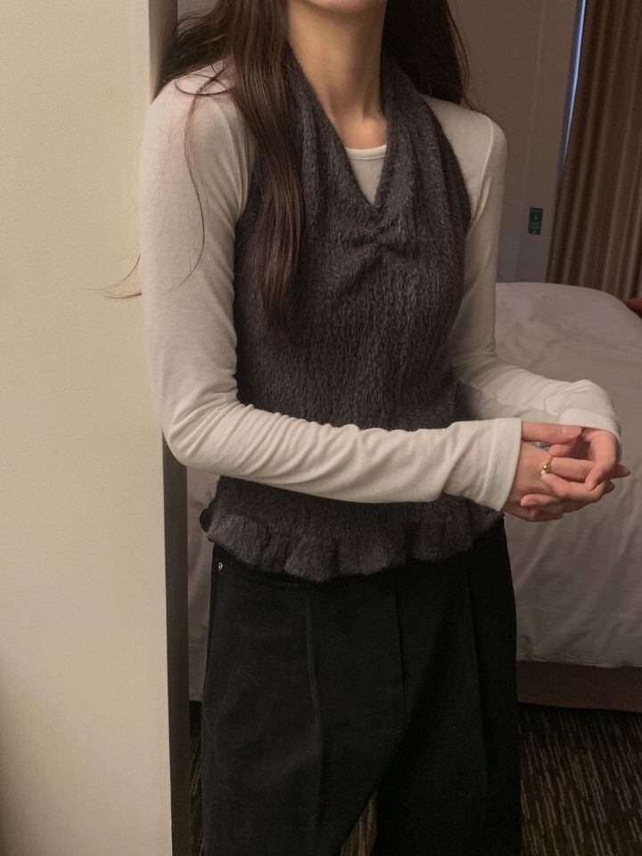 ・ふんわりとした毛のテクスチャーで四季を通じて活用できるホルターネックトップス