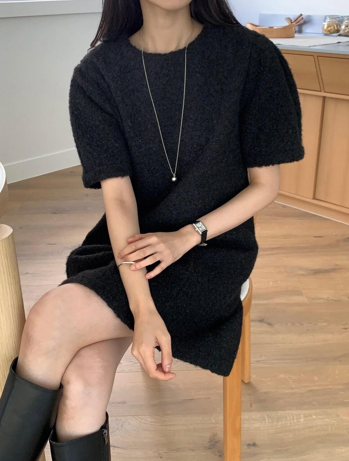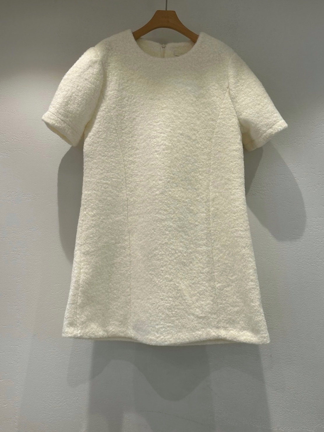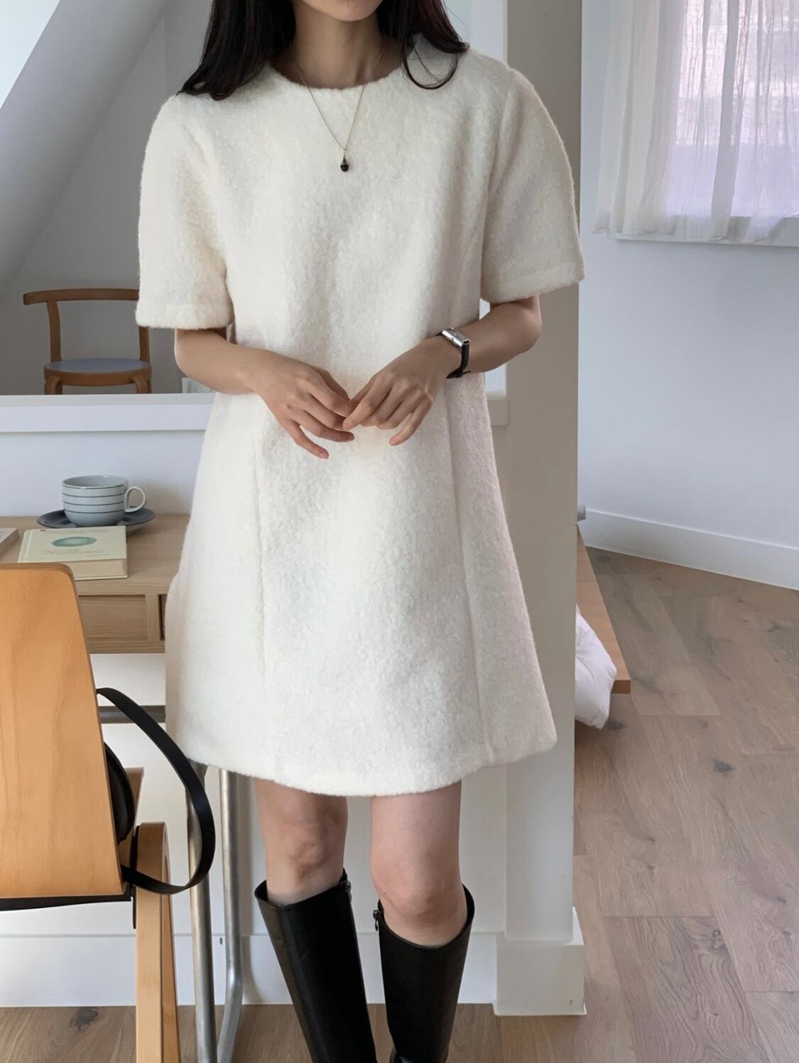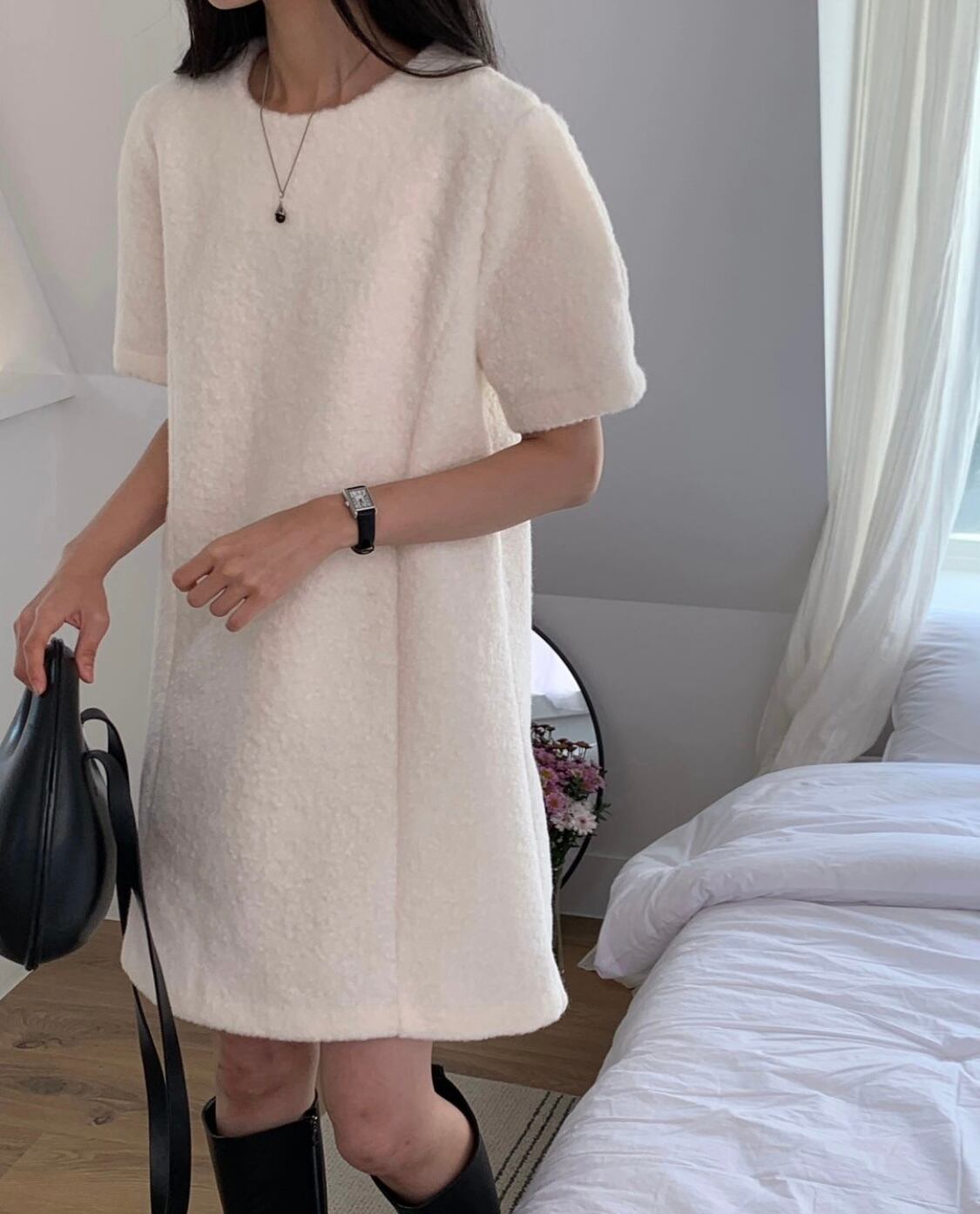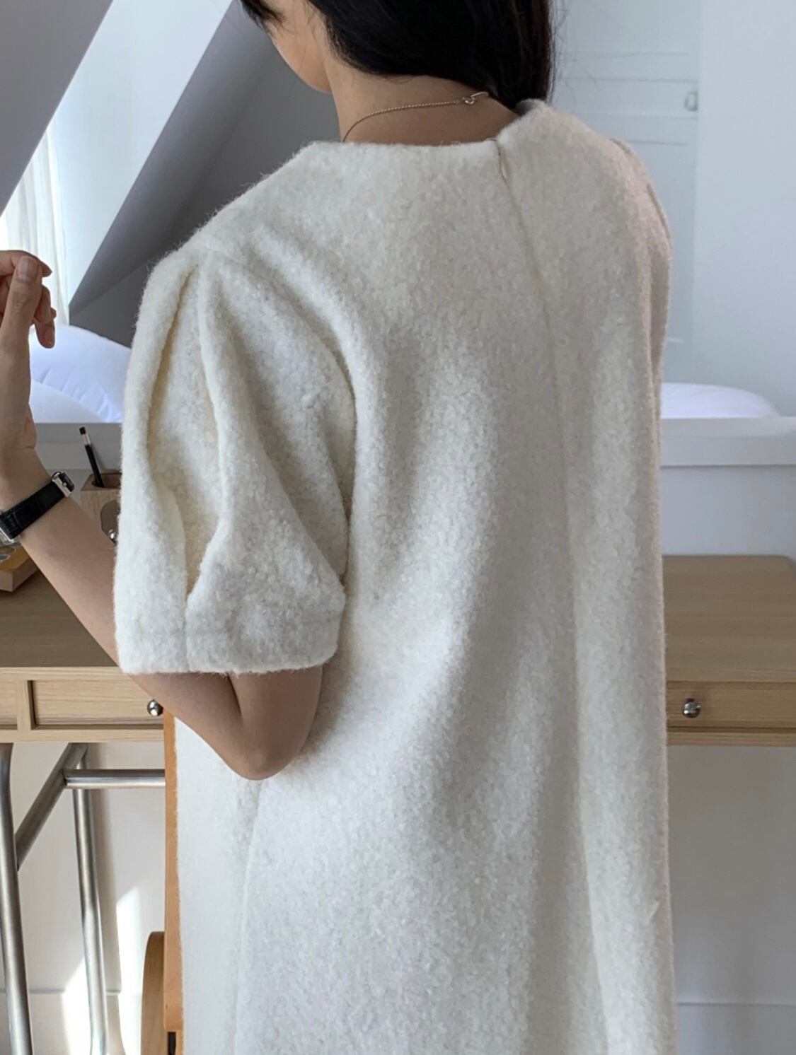 ・ブークレ素材で愛らしさをたっぷり込めたミディ丈ワンピース