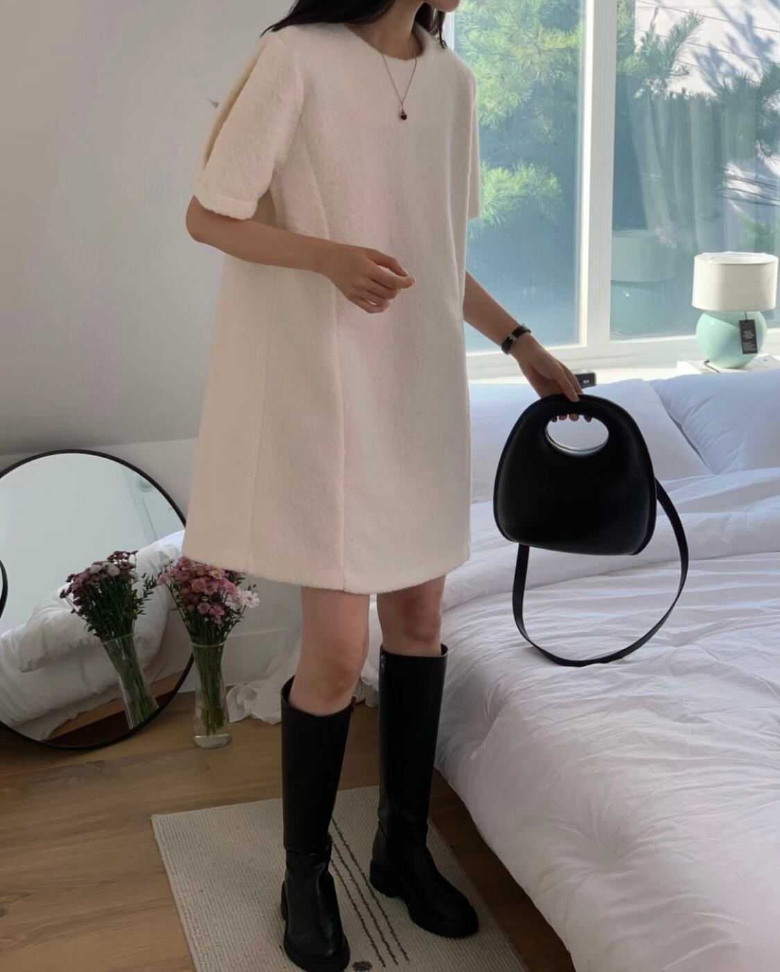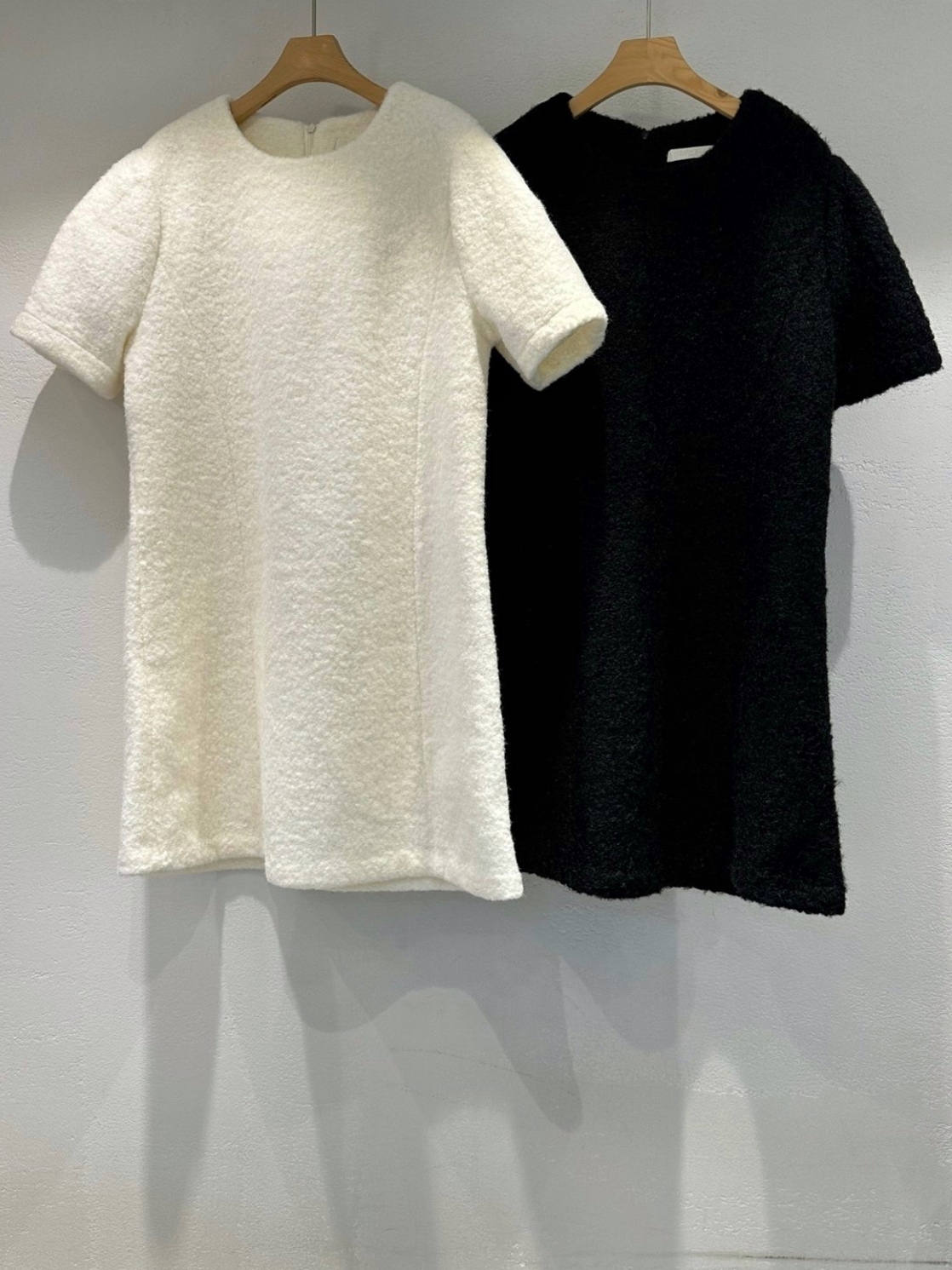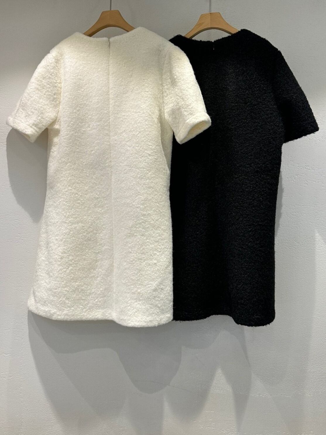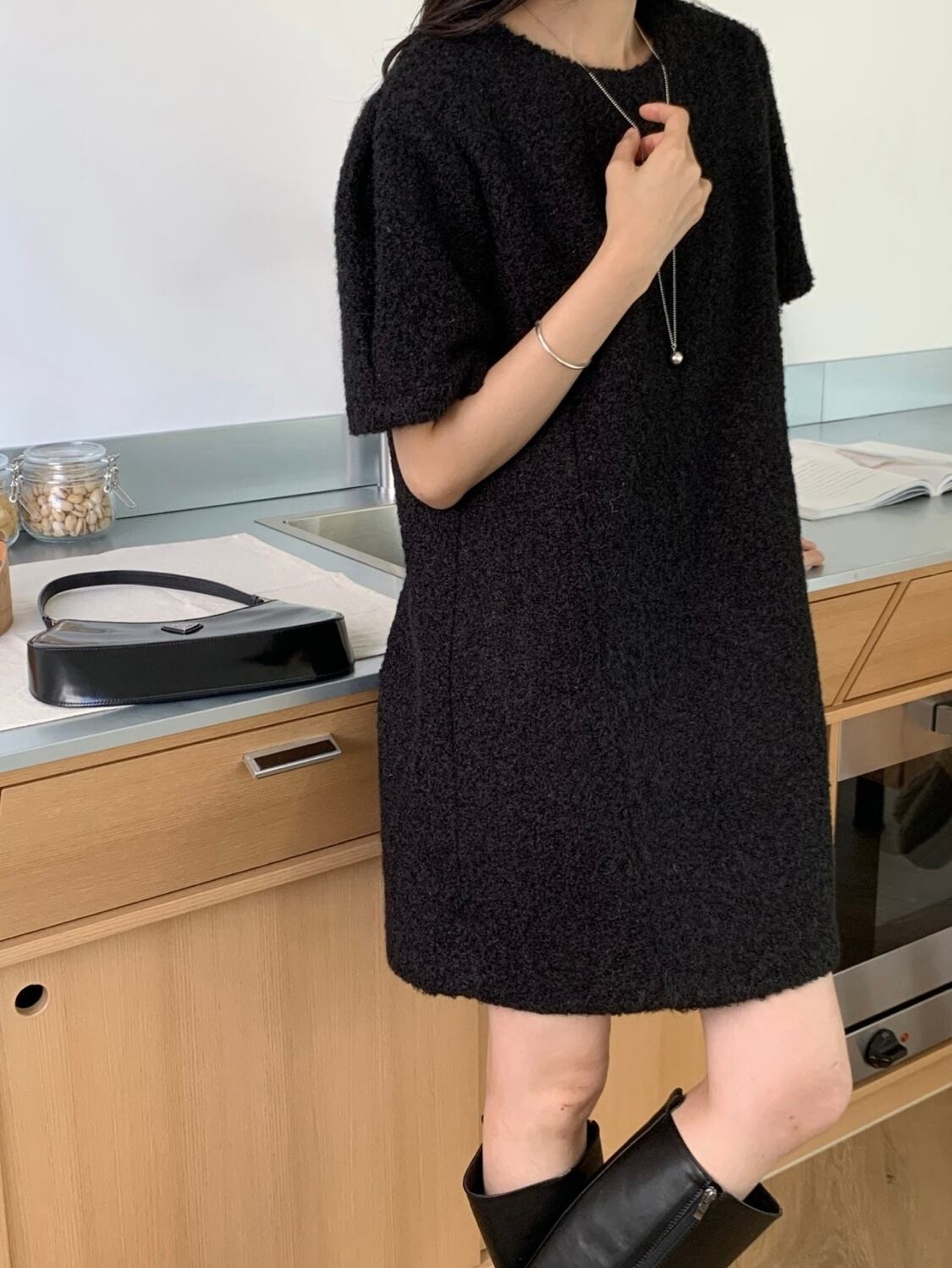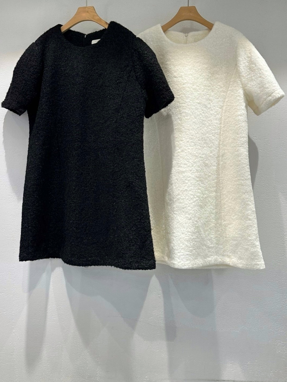 ・ブークレ素材で愛らしさをたっぷり込めたミディ丈ワンピース