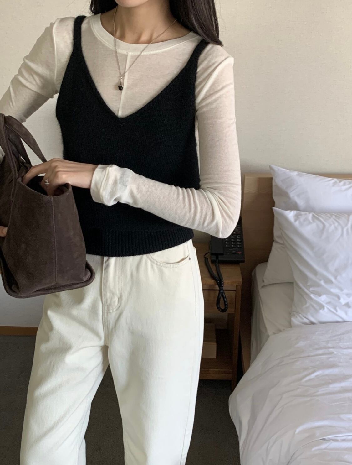 ・旬な着こなしが楽しめる、温かみのある素材を使用したビスチェ