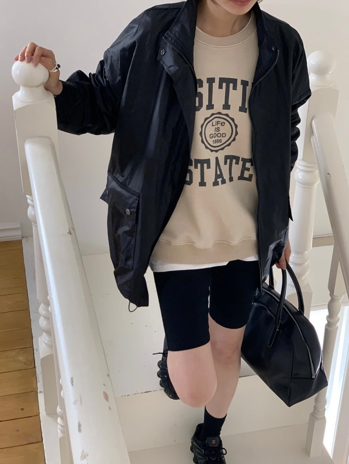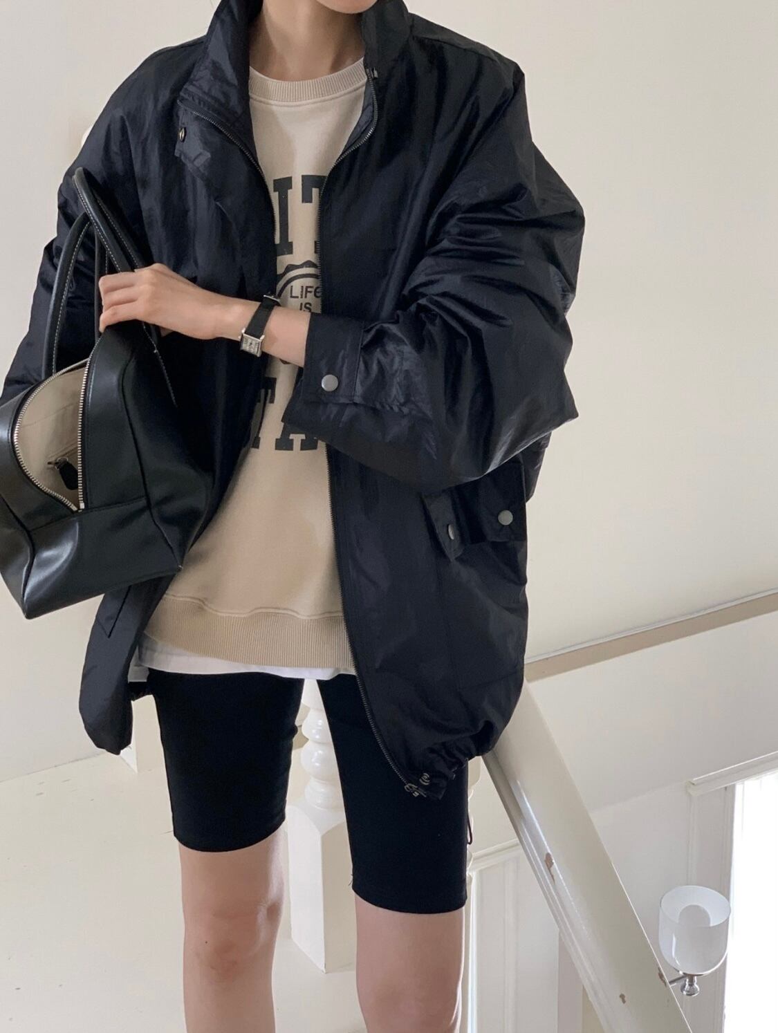 ・コーディネートに抜け感を生む、ビックシルエットのウィンドブレーカー