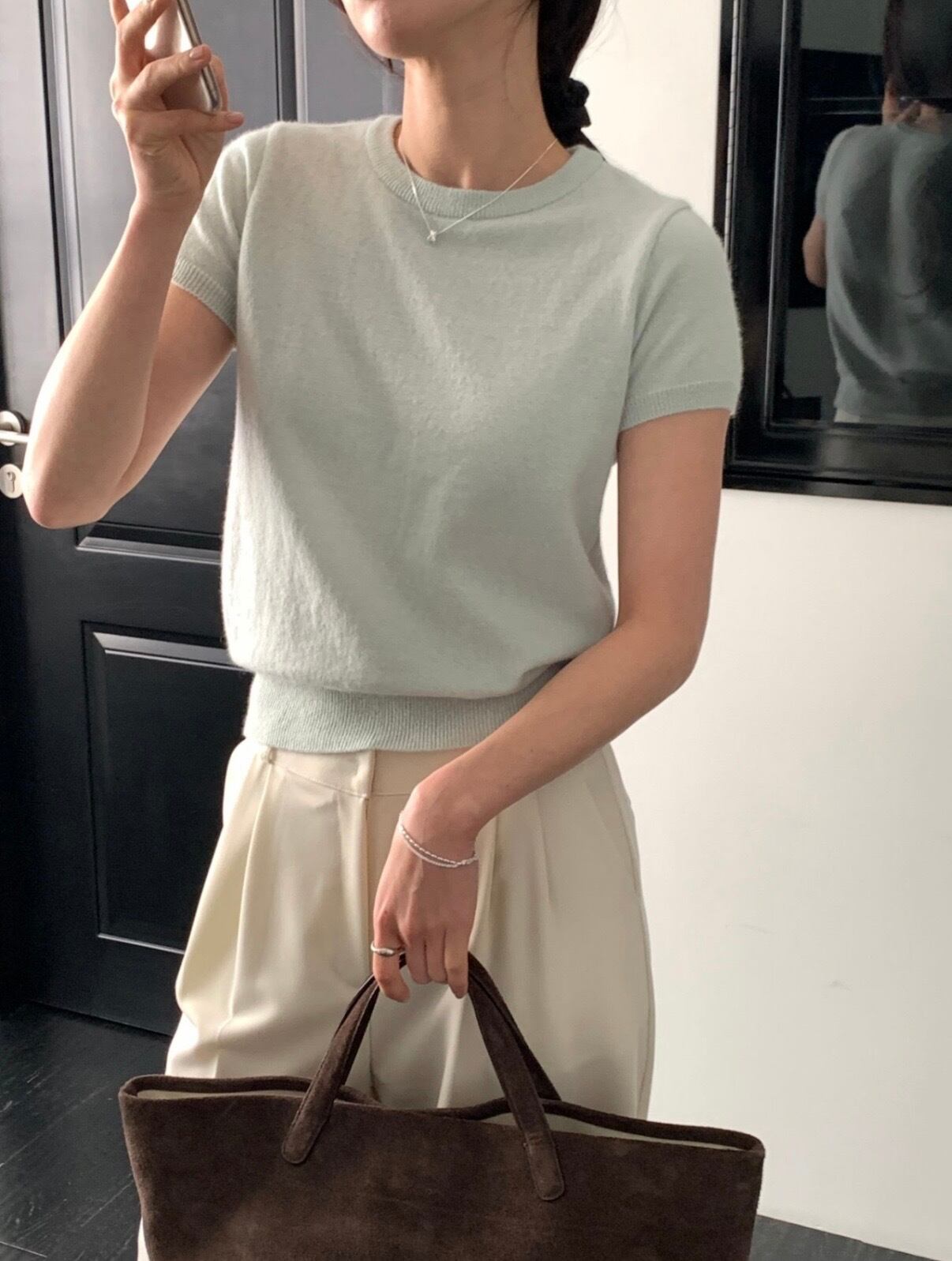 ・カジュアルからきれいめスタイルまでマッチする半袖ニット