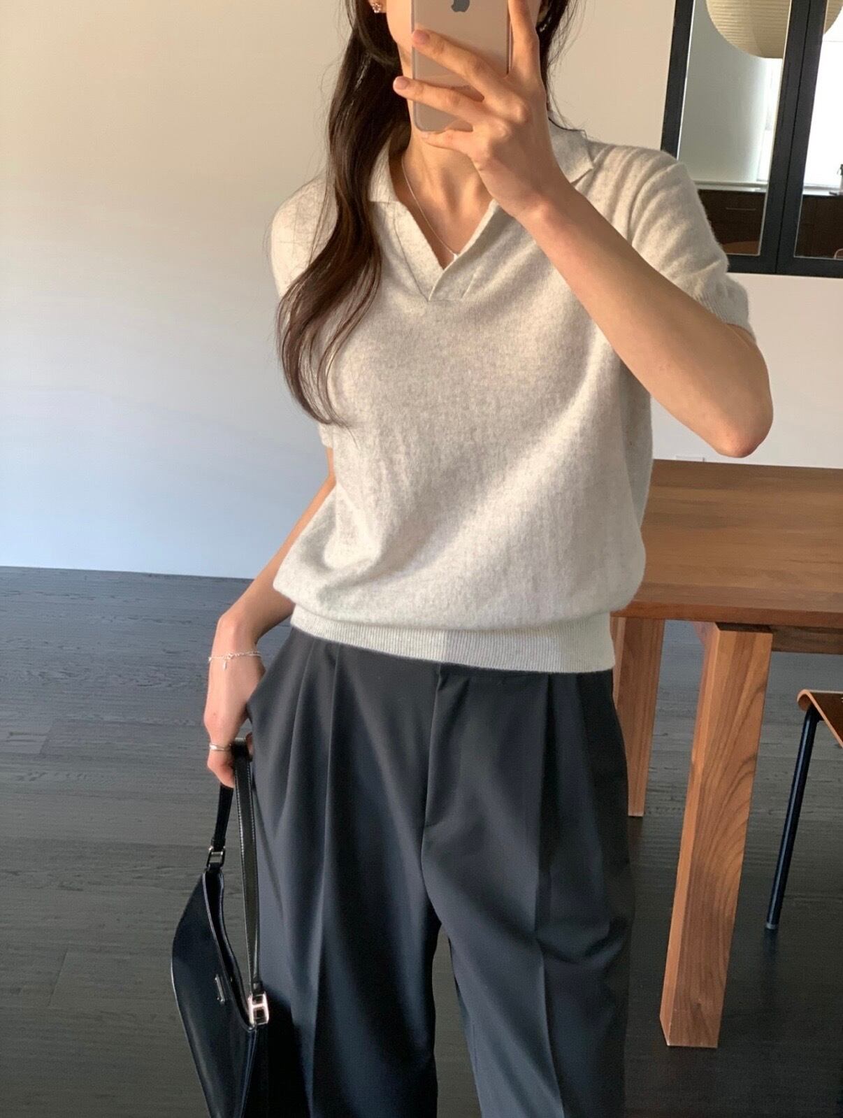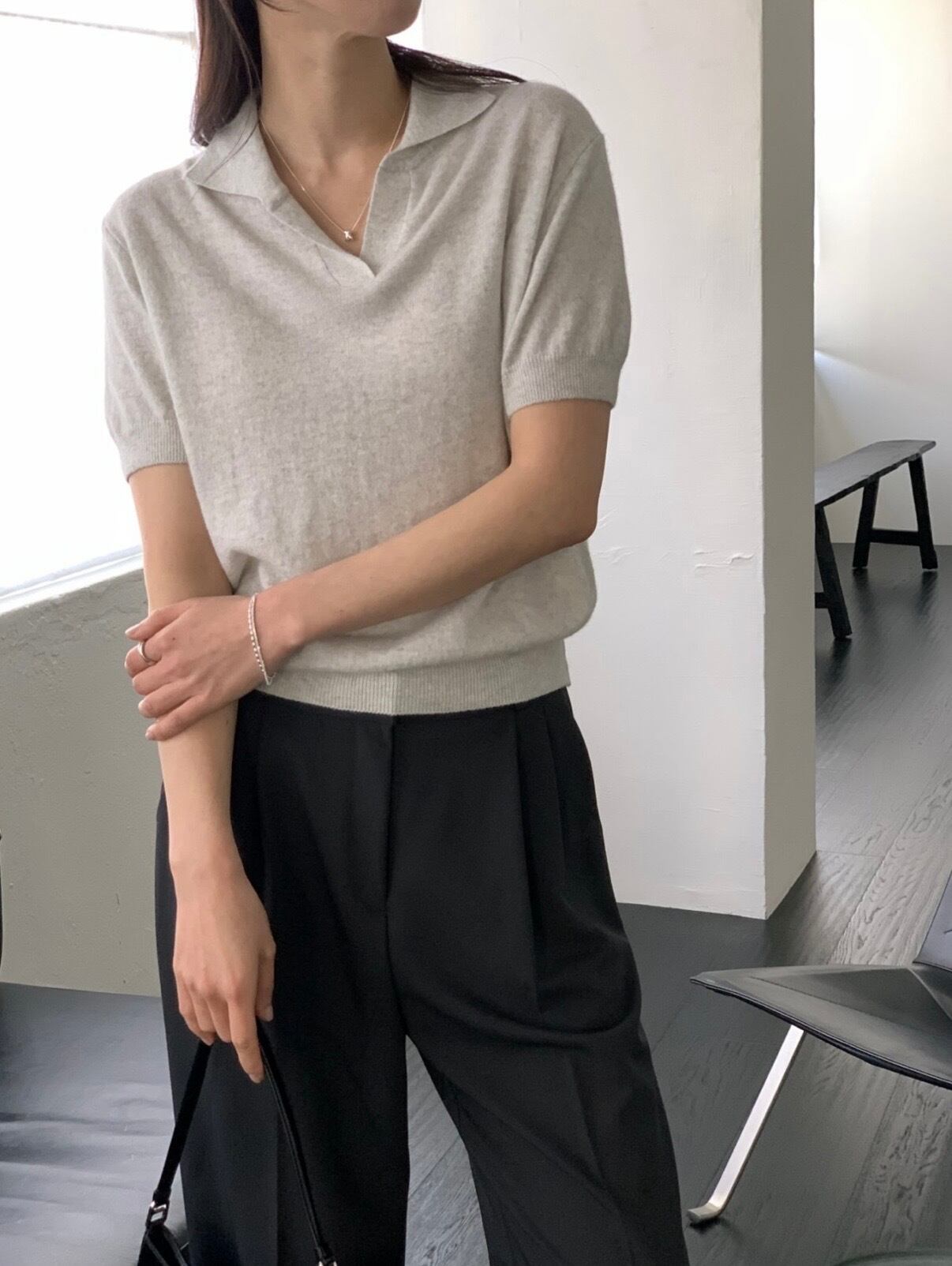 ・ポロデザインでコーデにポイントをプラスする半袖ニット