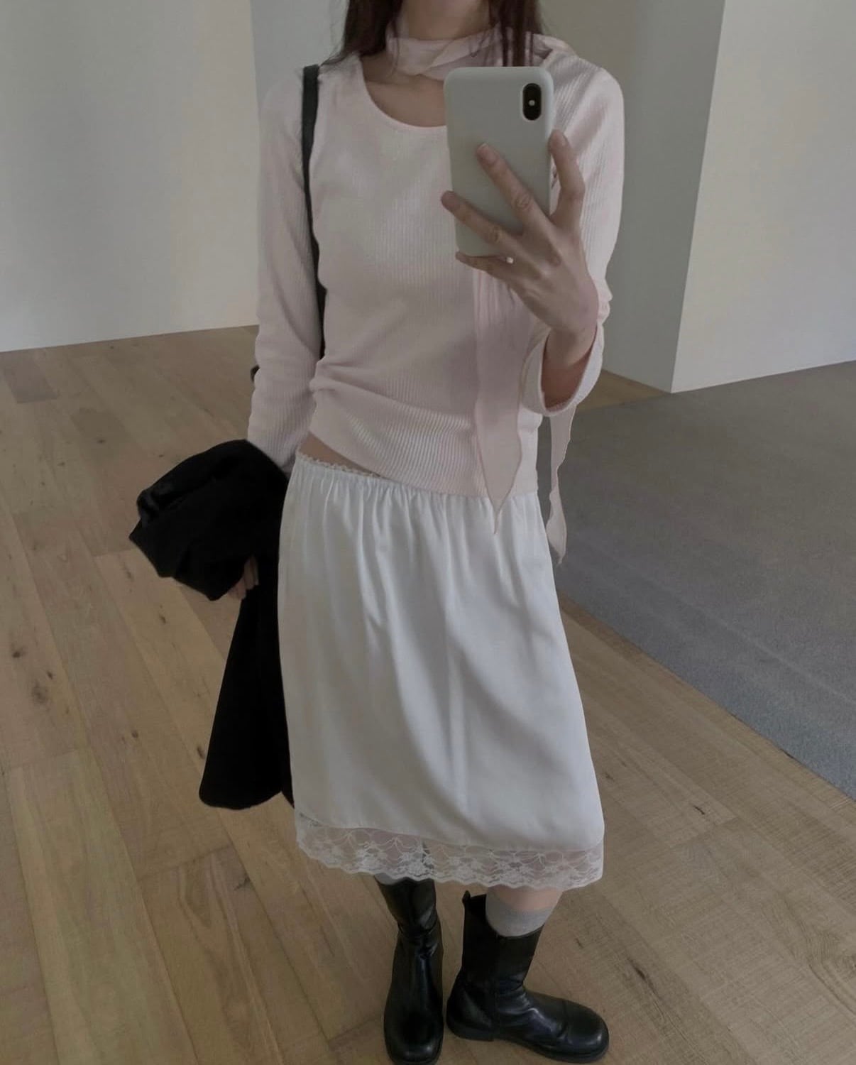・春の雰囲気が溢れる柔らかなパステルカラーで、ディープユーネックのリブTシャツとスカーフのセットです