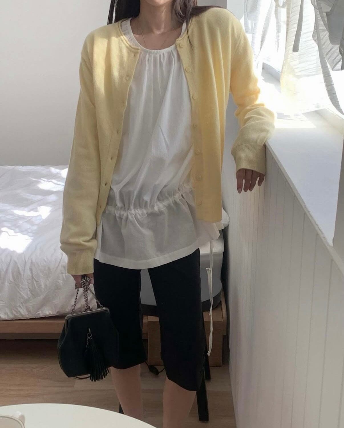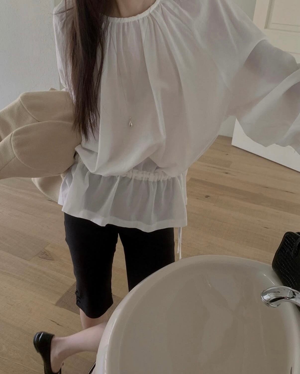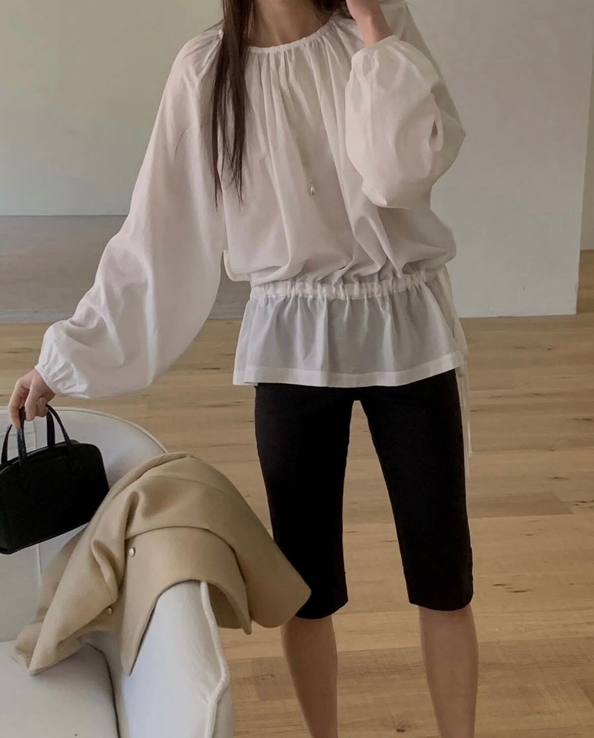 ・裾はシャーリングになっており、紐を調整してお好みのシルエットでご着用いただけます