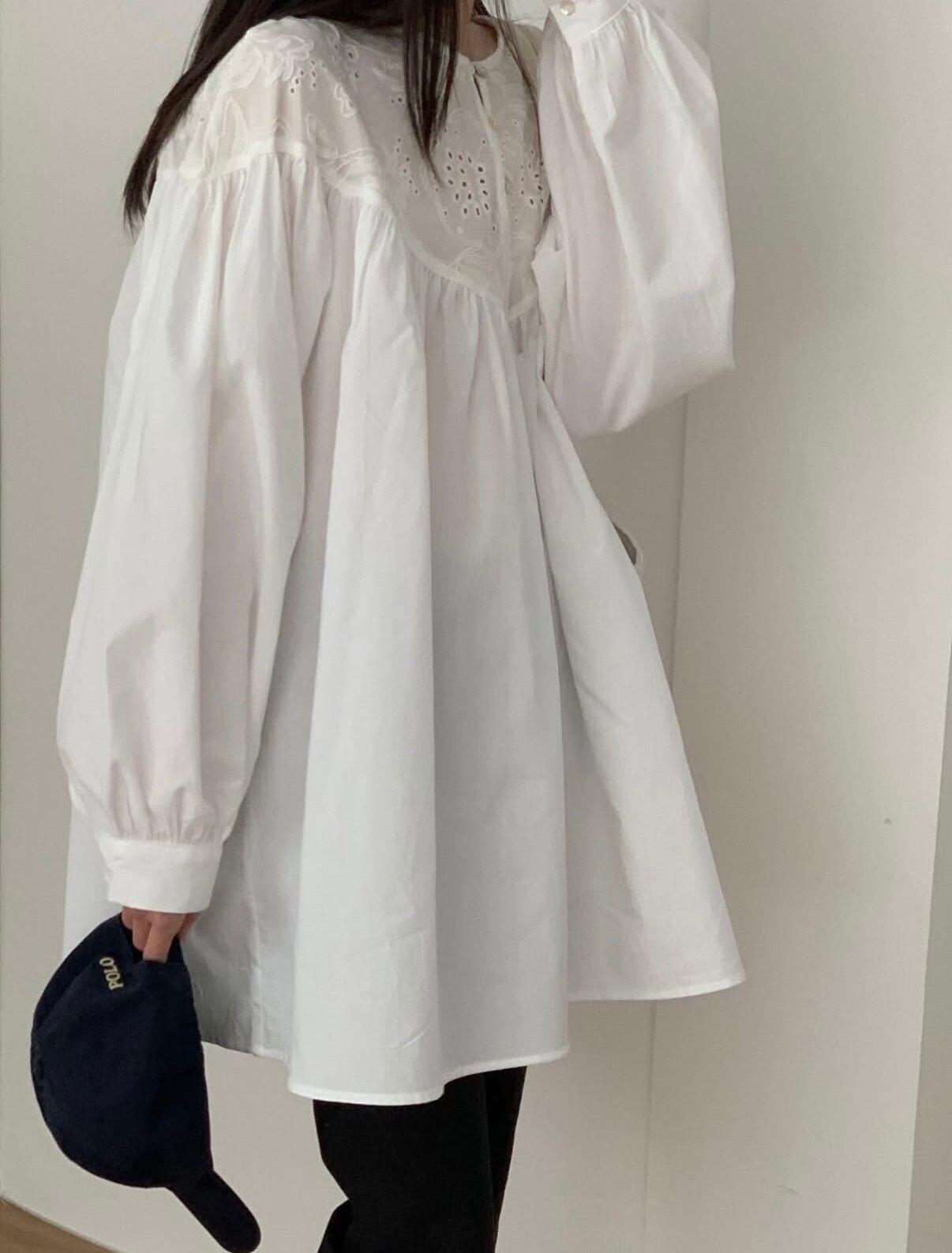 ・たっぷりと贅沢に寄せたギャザーは、落ち感のある素材を使用しているのでボリューム感が抑えられ、すっきり見えするのも魅力