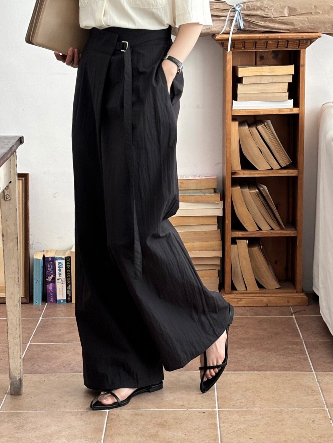 ・履くだけで抜け感のあるスタイリングを叶えるタックワイドパンツ