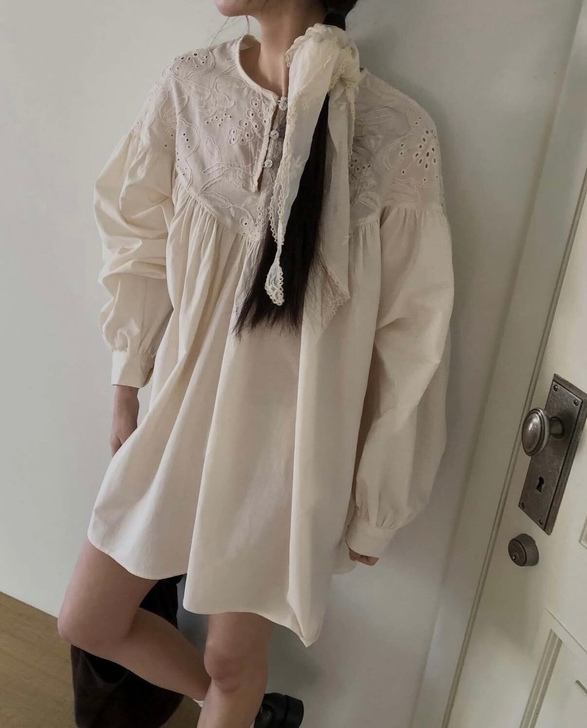 ・刺繍デザインが目を惹くチュニックワンピース