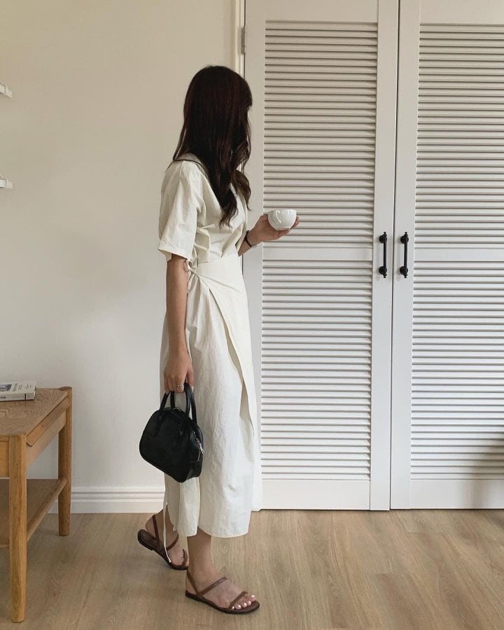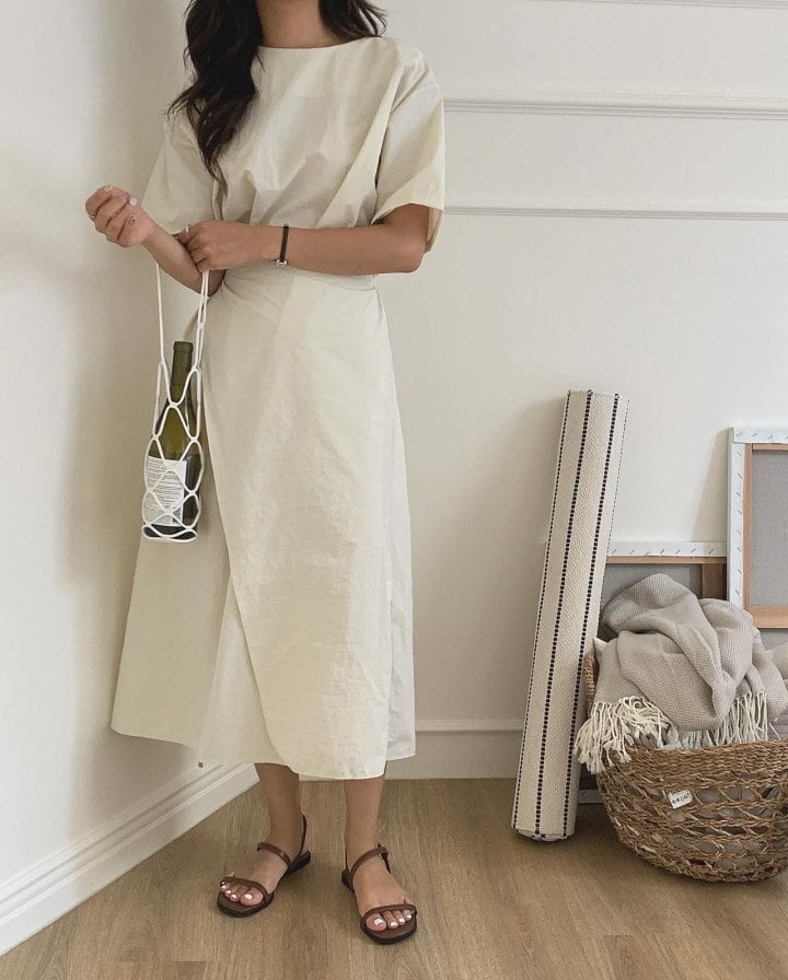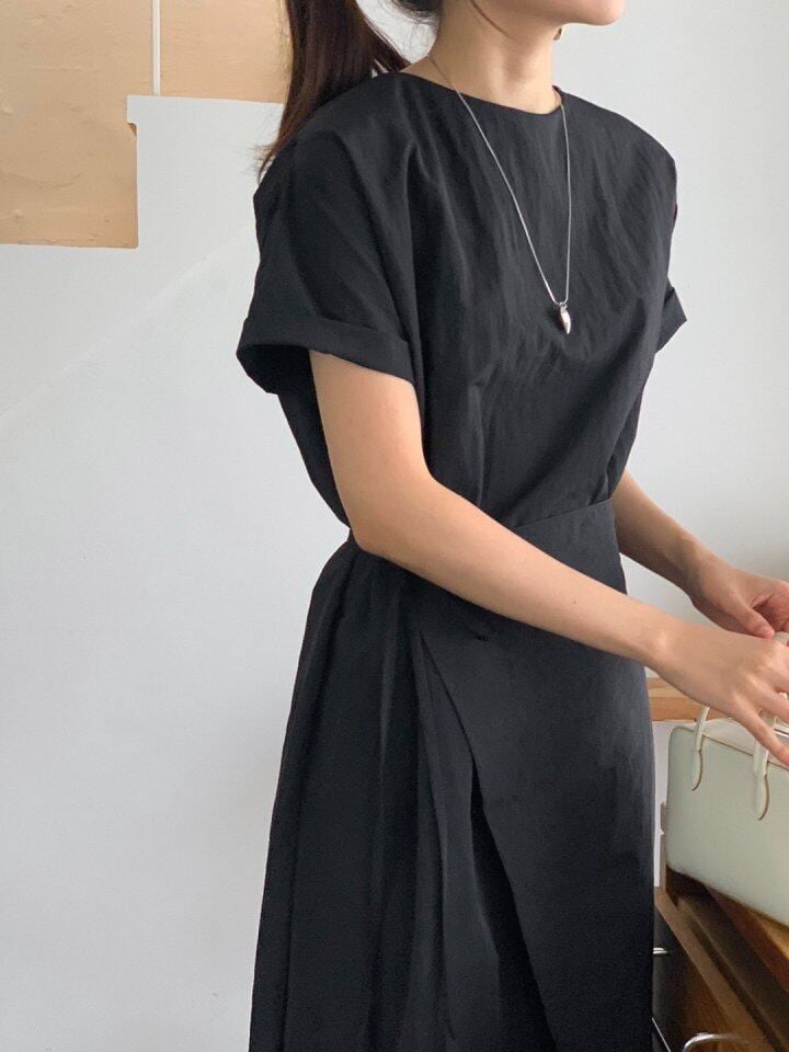 ・ベーシックなラインとロングな丈感がムード満点のワンピース