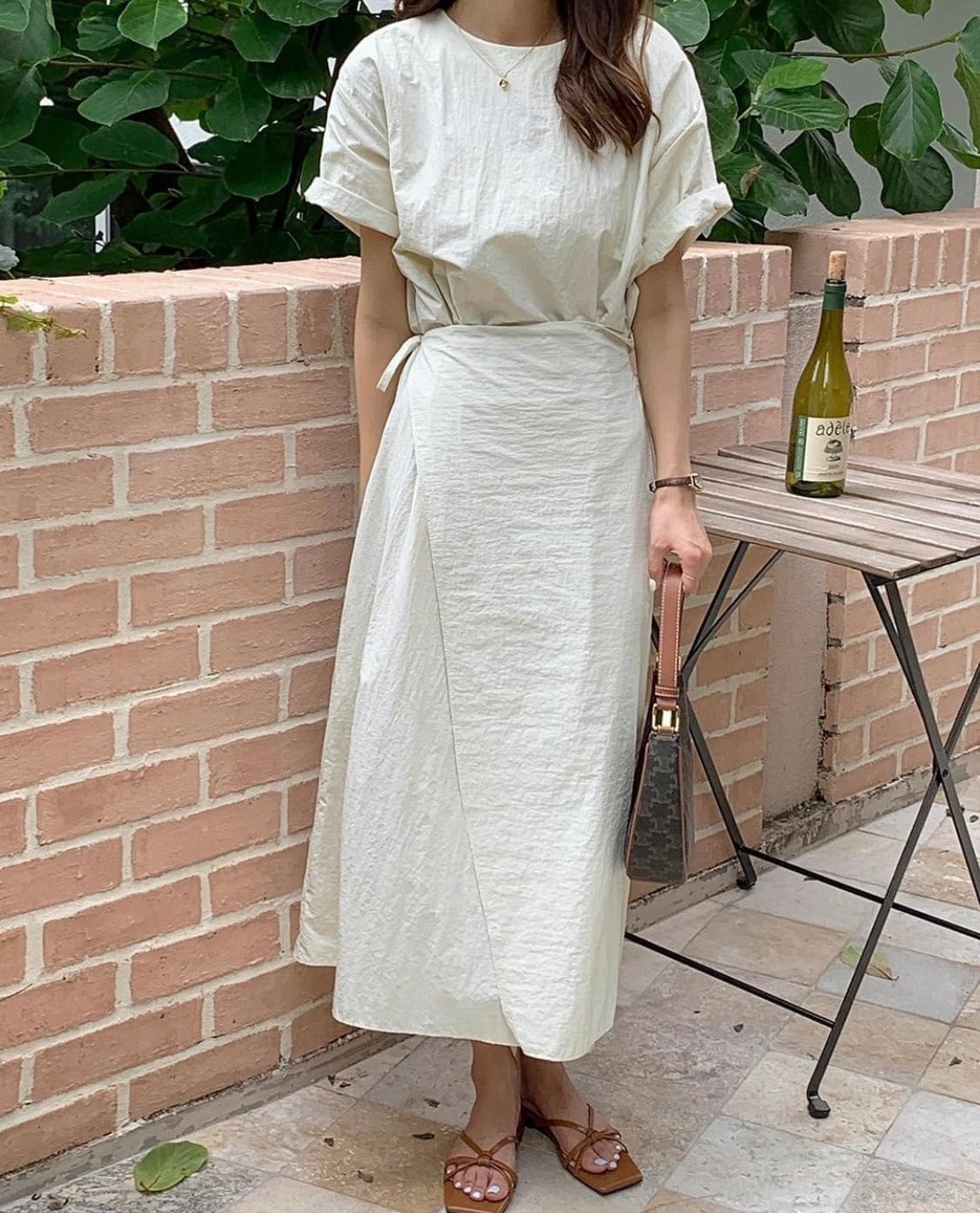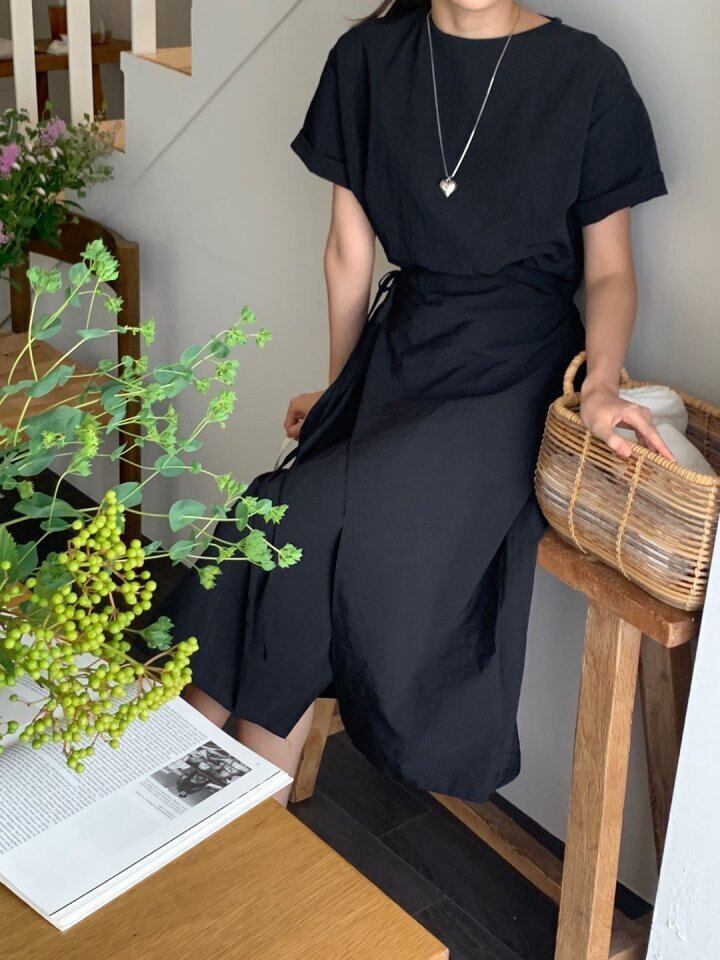 ・スカート部分のラップされたデザインで、ご自身のボディラインに合わせてラクに着用いただけます