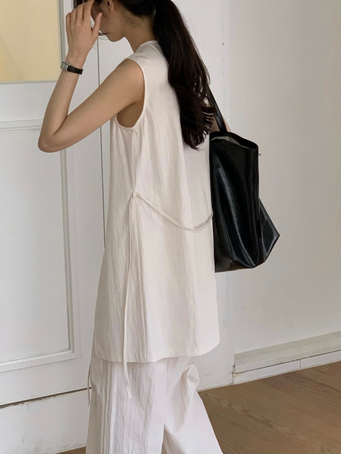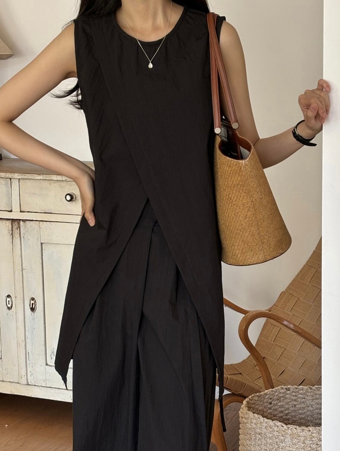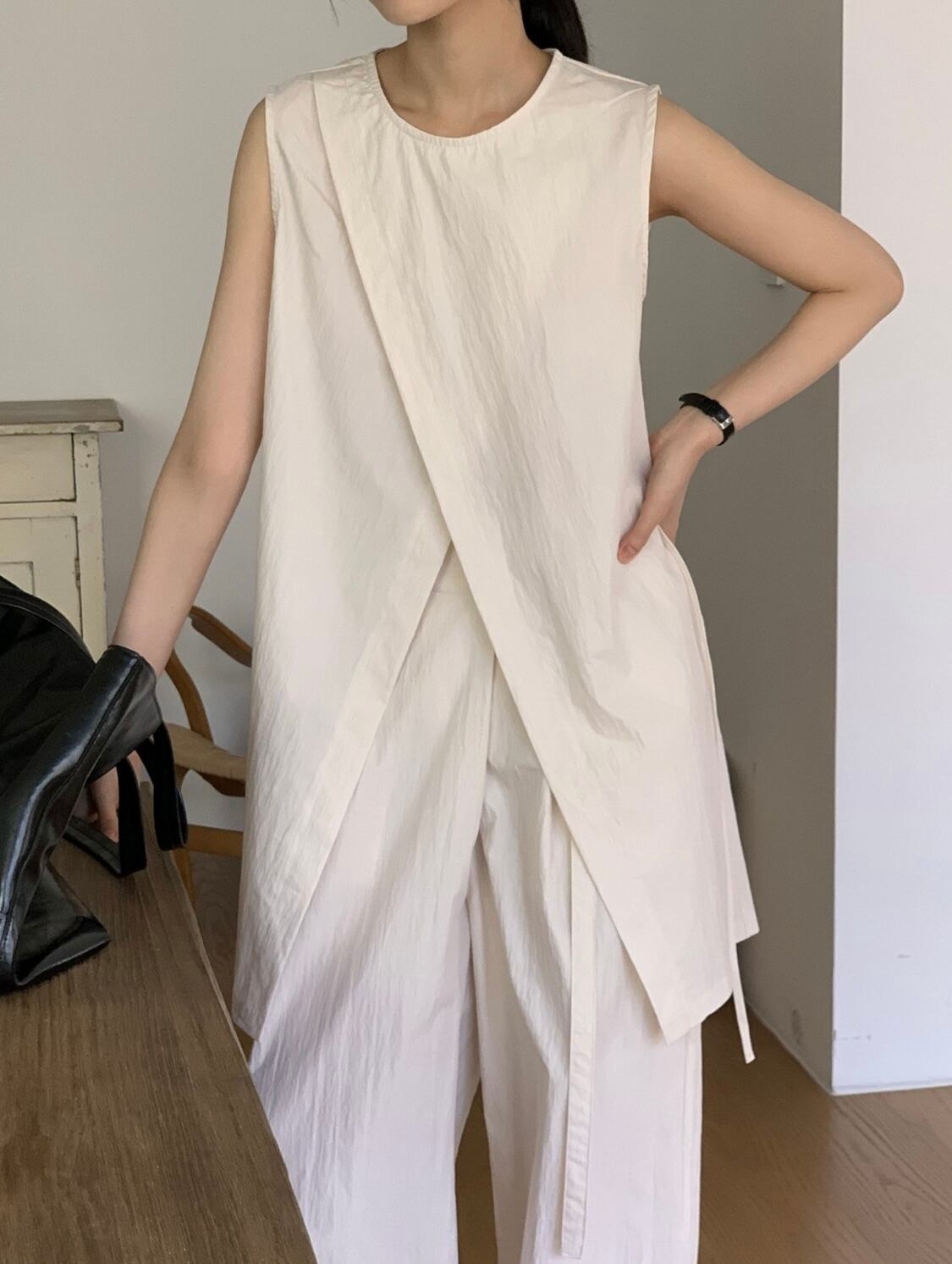 ・着方次第でいろんな表情に変化するノースリーブトップス