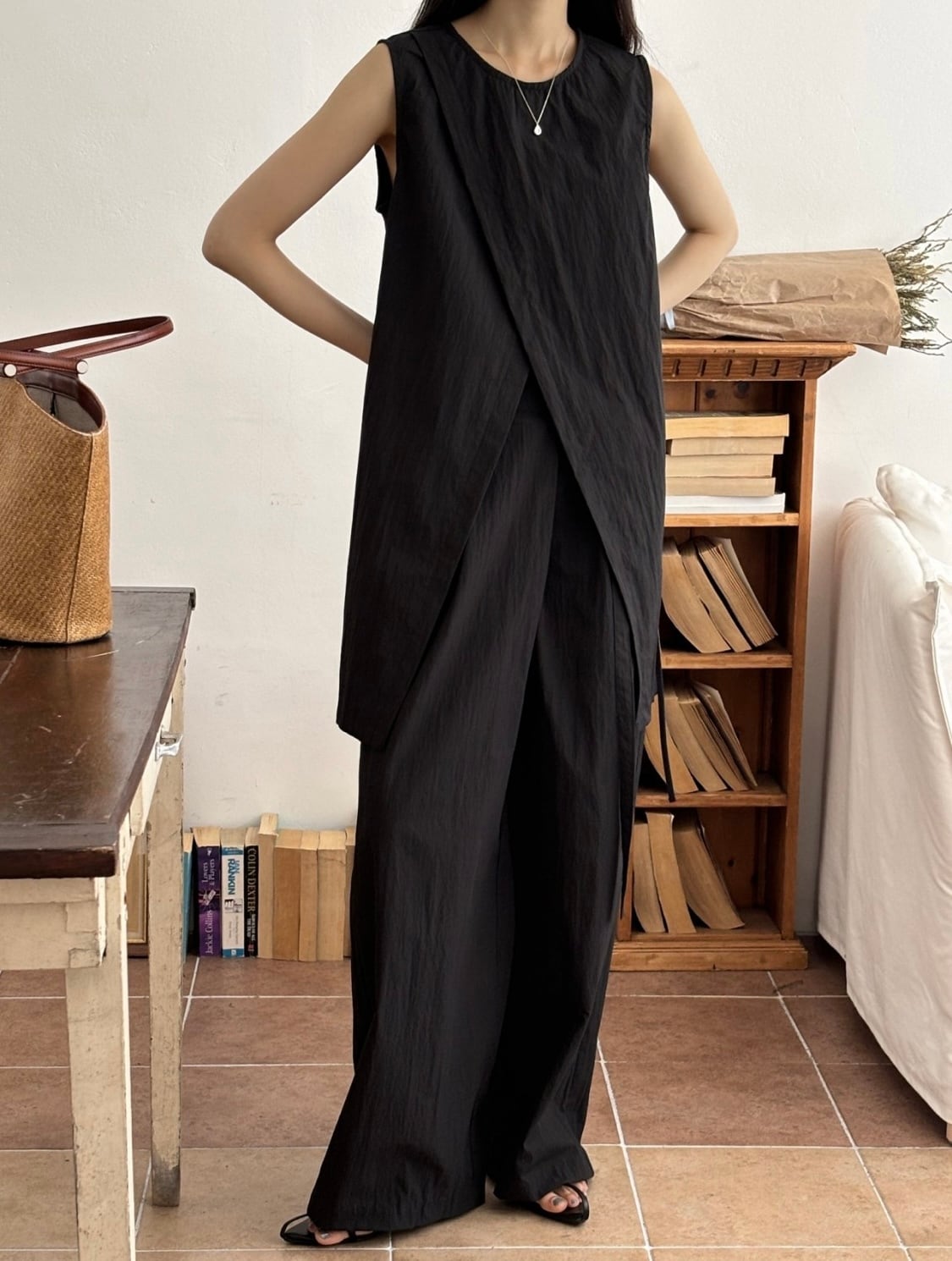 ・favorite side Dring tuck wide pantsとセットアップスタイルでご着用いただけます